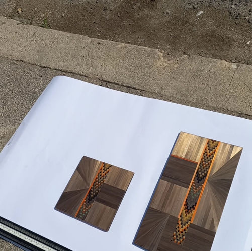 This commission began as a diptych of straw marquetry wall art, with colors carefully chosen to harmonize with my client’s interior. The design itself was left entirely to me, a rare and humbling gift of trust. When I asked her what she envisioned, her answer was the best I could hope for: “I love what you do… so just do what you do and I will love it.”